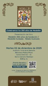 - Al acceder a la información de la Agenda Colaborativa o a cualquier otra información a través del Portal, el usuario renuncia a todo derecho a interponer recursos contra el Programa de Memoria, Patrimonio y Archivo Histórico, adscrito a la Secretaría de Cultura Ciudadana de la Alcaldía de Medellín. Distrito Especial de Ciencia, Tecnología e Innovación, y exime a esta de cualquier reclamación relativa al uso del material al que haya tenido acceso a través del portal o a la confianza depositada en dicho material.